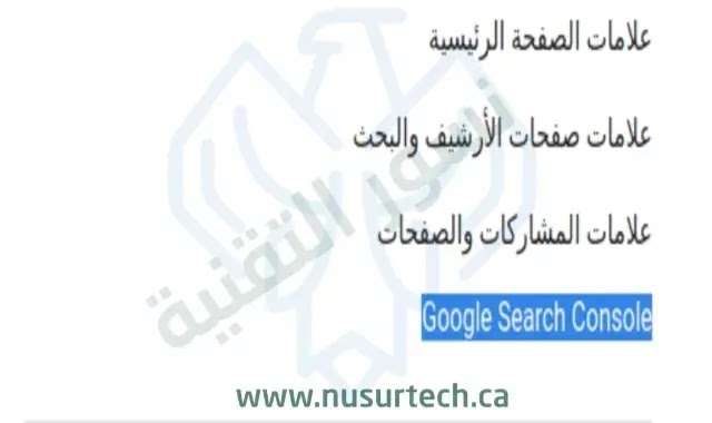 بعد ذلك نذهب إلى خيار Google Search Console يكون هذا الخيار أسفل الخيارات السابقة باللون الأزرق و يكون مكانه كما يلي.